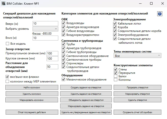 BIM Collider автоматически находит пересечения между элементами в связанных моделях, заменяя процесс обнаружение коллизий в Navisworks. В месте пресечения создается экземпляр сущности обобщенной модели, геометрия которого точно описывает геометрию обнаруженной коллизии.